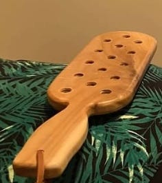 Ours is mostly a soft FLR. At the core, we are spankos. We love all types of spankings. We do all kinds of role plays, sometimes have others witness or even participate in the spankings. We mostly use traditional implements with my hand a nice brush as my favorite implements. We were also given a great school paddle, complete with holes, from another FLR couple. They let me pick from two paddles that were identical except the one had holes across the business end; I selected the holy paddle. 😊 The husband of the other couple was particularly thrilled when I made the choice, and the paddle left their home. It’s been used often on my husband’s bottom.